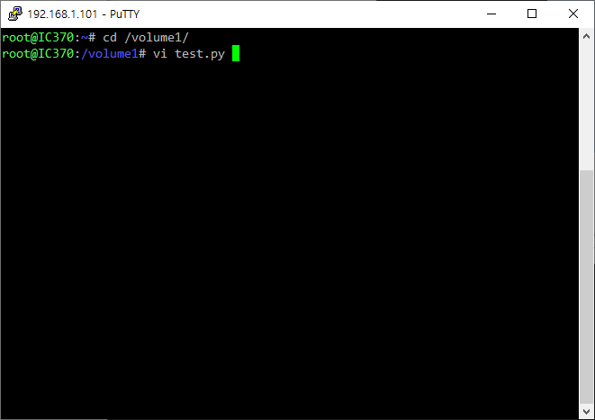 /volume1 디렉토리로 이동하여 test.py 편집