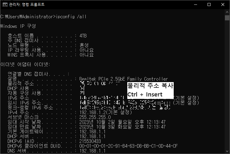 MAC 주소 확인