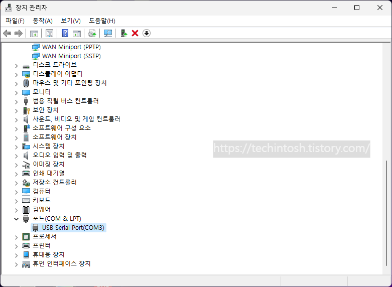 USB Serial Port 확인 : COM3