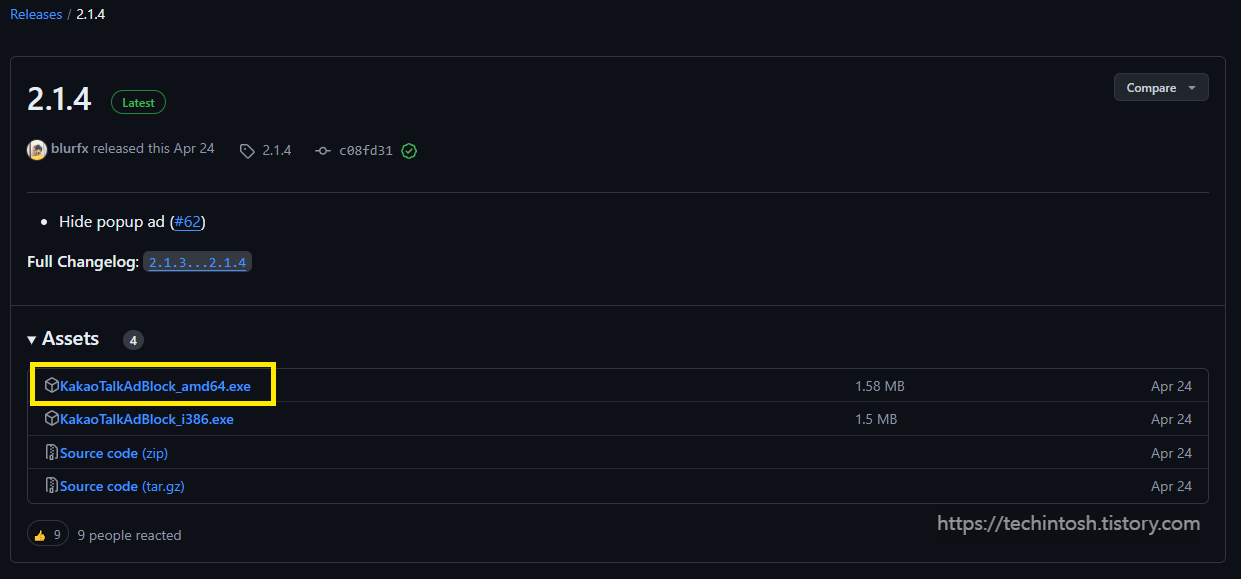 우측 노란색 테두리에 Releases 를 클릭한다.